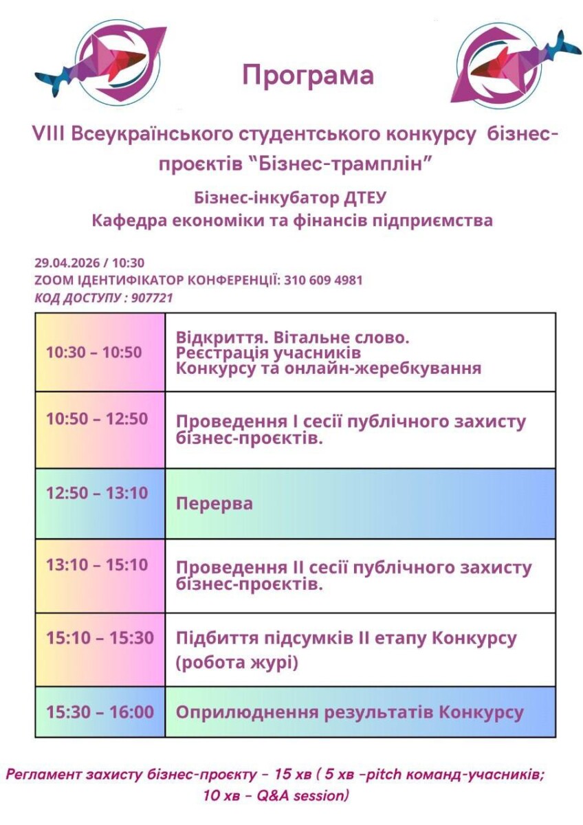 продемонстрували високий рівень підготовки та інноваційного мислення, успішно пройшовши до фіналу VIII Всеукраїнського студентського конкурсу бізнес-проєктів «БІЗНЕС-ТРАМПЛІН», організованого Державний торговельно-економічний університет.